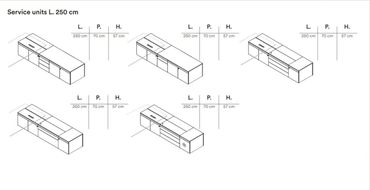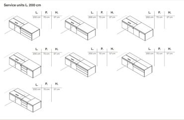 The desk with panelled structure extends and completes the Ono collection. A prestigious desk, with important dimensions, characterised by sober and contemporary lines that combine with the elegance of the materials used. The solid worktop is supported by a metal under-top, hidden by the distinctive aluminium perimeter frame. The worktop is also available with a sliding top for quick access to under-top electrification. The tops are supported by structural side panels with a thickness of 90 mm, processed using folding technology. The inner side of the side panels is equipped with two cable passages, positioned at the top and bottom, which allow vertical wiring of the desk. In this way, it is possible to have a perfectly working space without visible cables. The lower part of the sides is protected and enclosed by a metal sheet into which the adjustment feet are fixed to ensure perfect levelling of the desk to the floor. Top and sides are linked together by the modesty panel that structurally joins the entire composition, giving the desk stability. The Ono executive desk is a functional workstation that can be integrated with the service cabinet. It can be assembled according to your needs with pedestals, filing cabinets and modules with doors, and can be equipped with a small bar fridge with an ice compartment and bottle compartment. The lateral extensions help create additional work space.